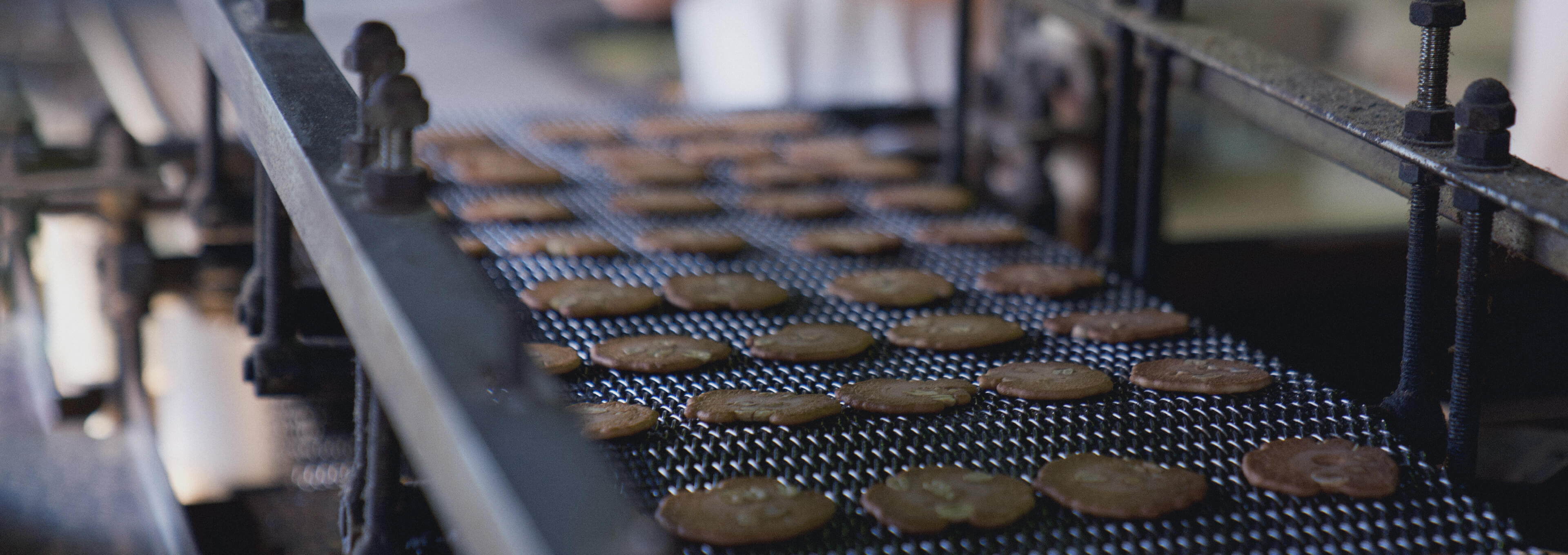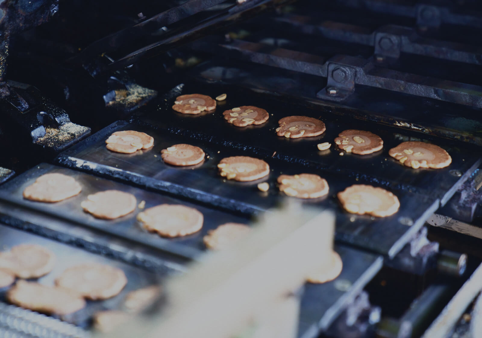 職人が手間暇をかけて仕上げた生地を大量製造も可能な製造ラインで一気に焼き上げてつくるお菓子たち。