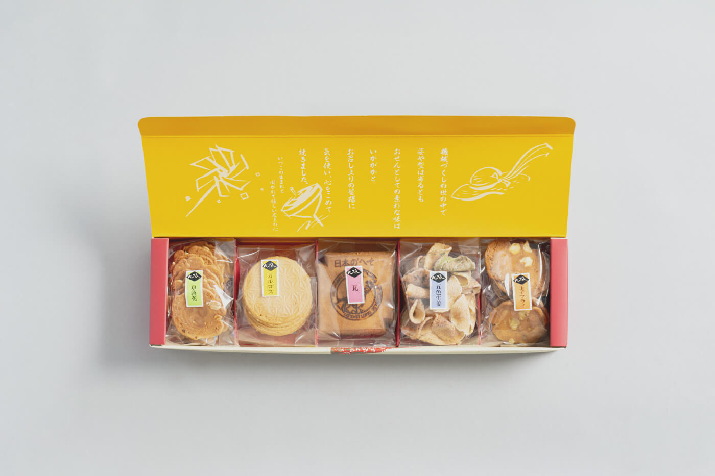 食べた瞬間にふわりと卵の香りが広がる「瓦せんべい」、良質でやわらかいピーナツがごろごろっと入った「京落花」。