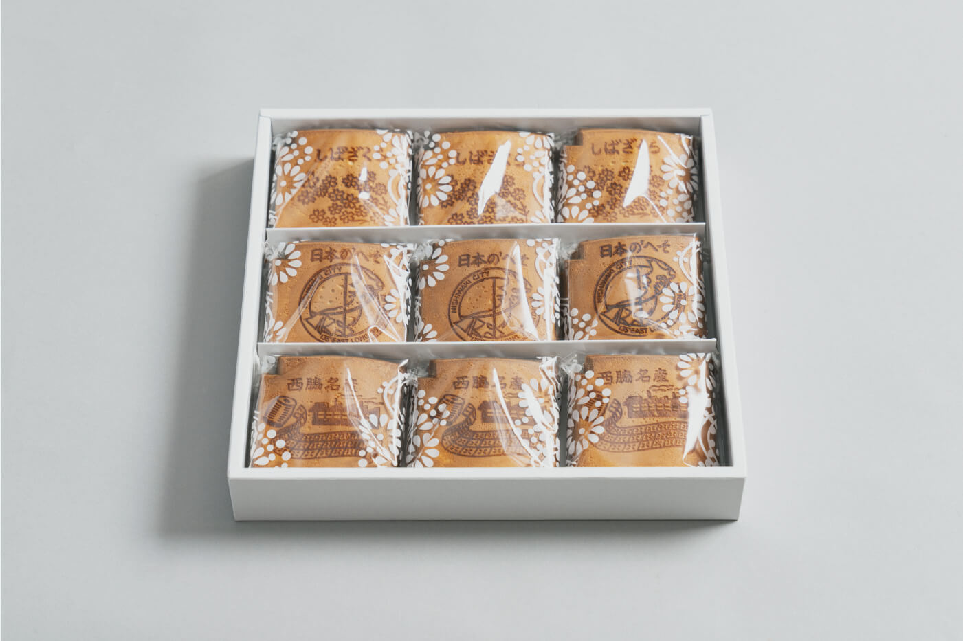 日本のへそのシンボルマークや、西脇市の花であるしばざくらの焼印は、職人が一枚一枚、手作業で押しています。