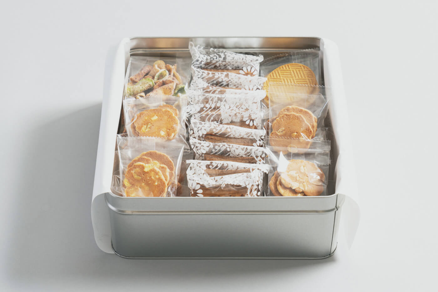 一人で食べきれる量に小分けした缶入りはお得感があり、ご自宅用としても人気です。