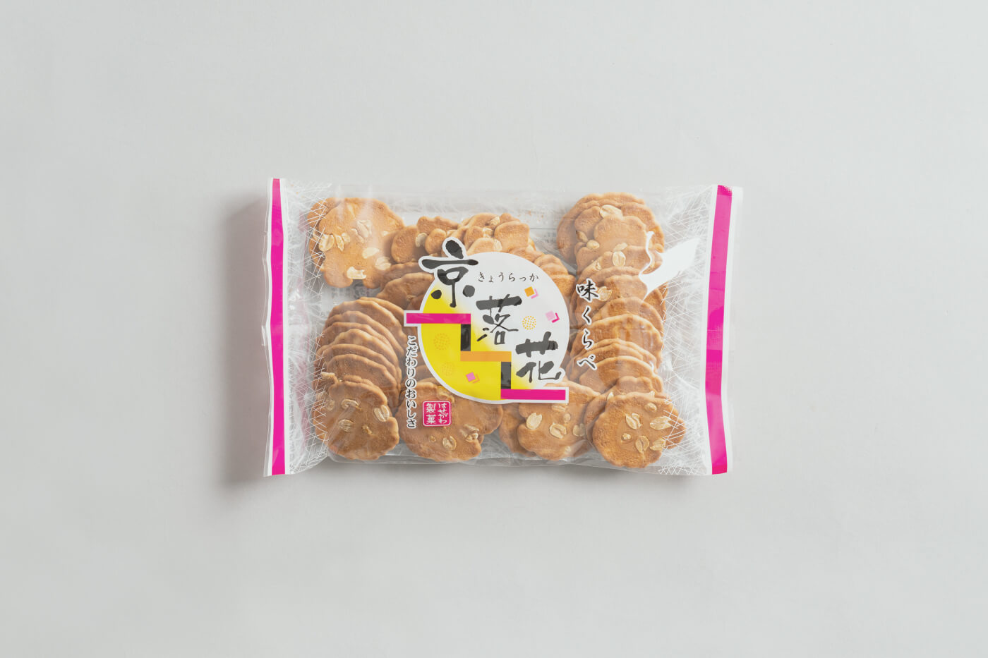 食べた瞬間にふわりと卵の香りが広がる「瓦せんべい」、良質でやわらかいピーナツがごろごろっと入った「京落花」。
